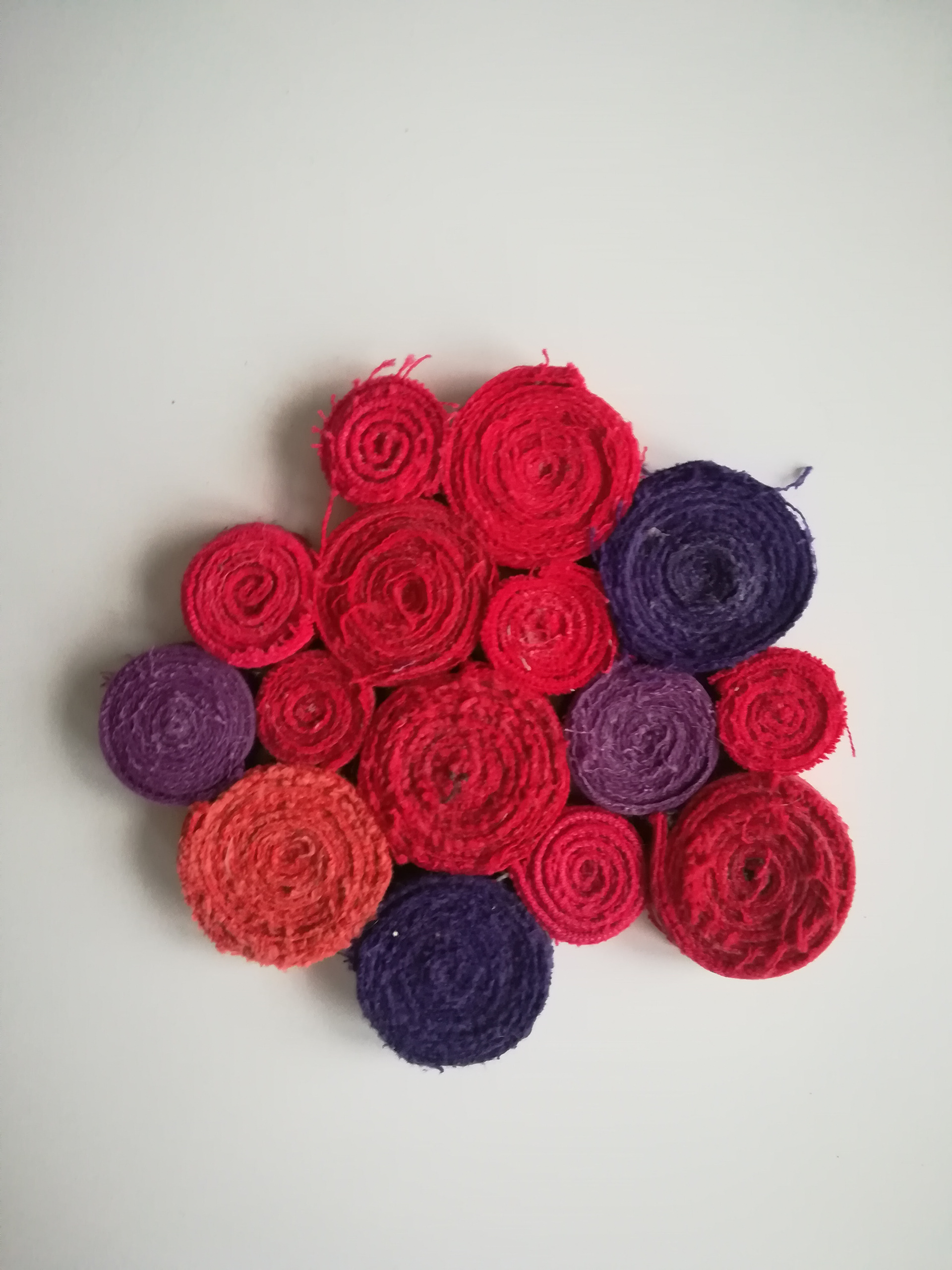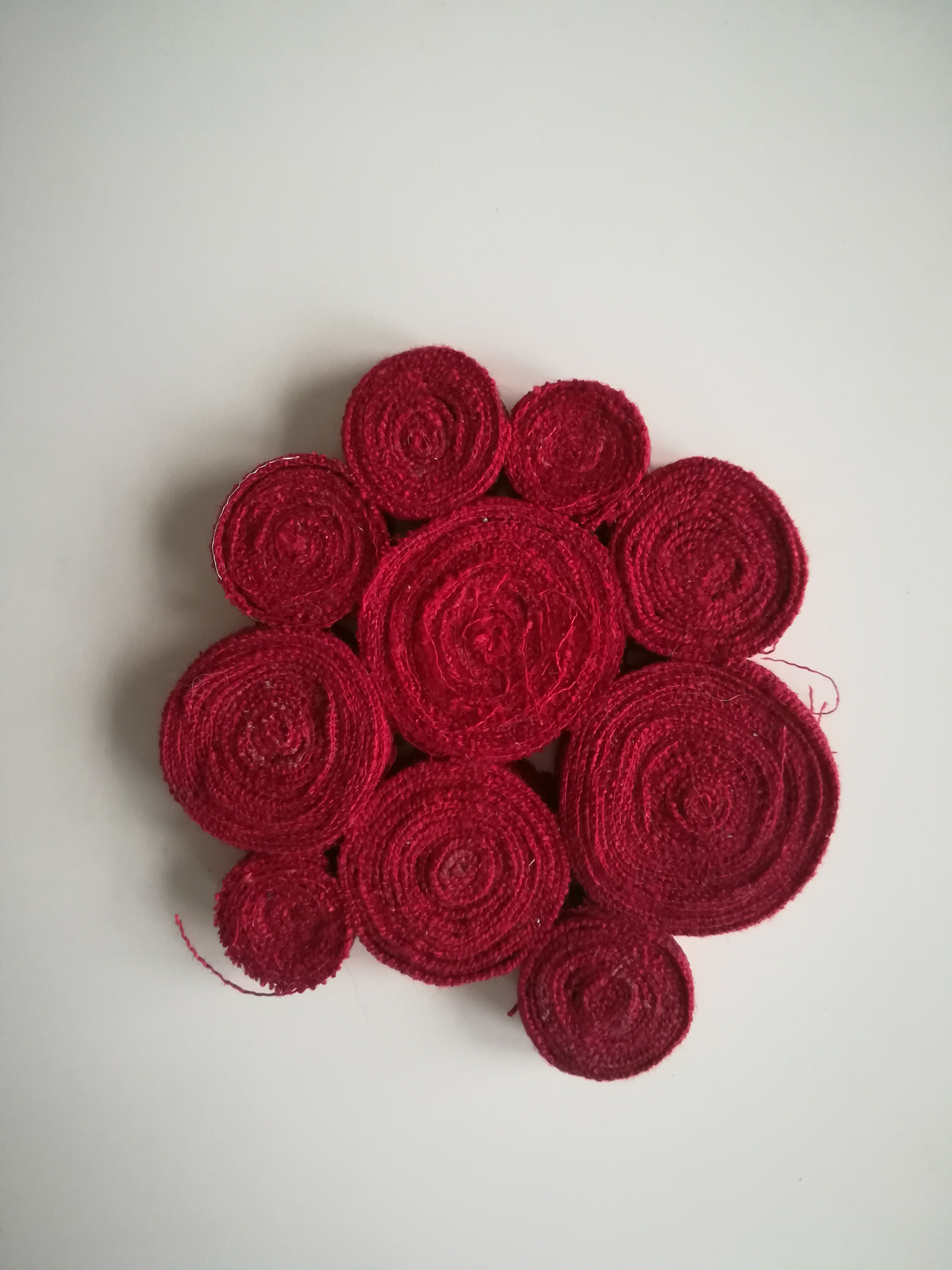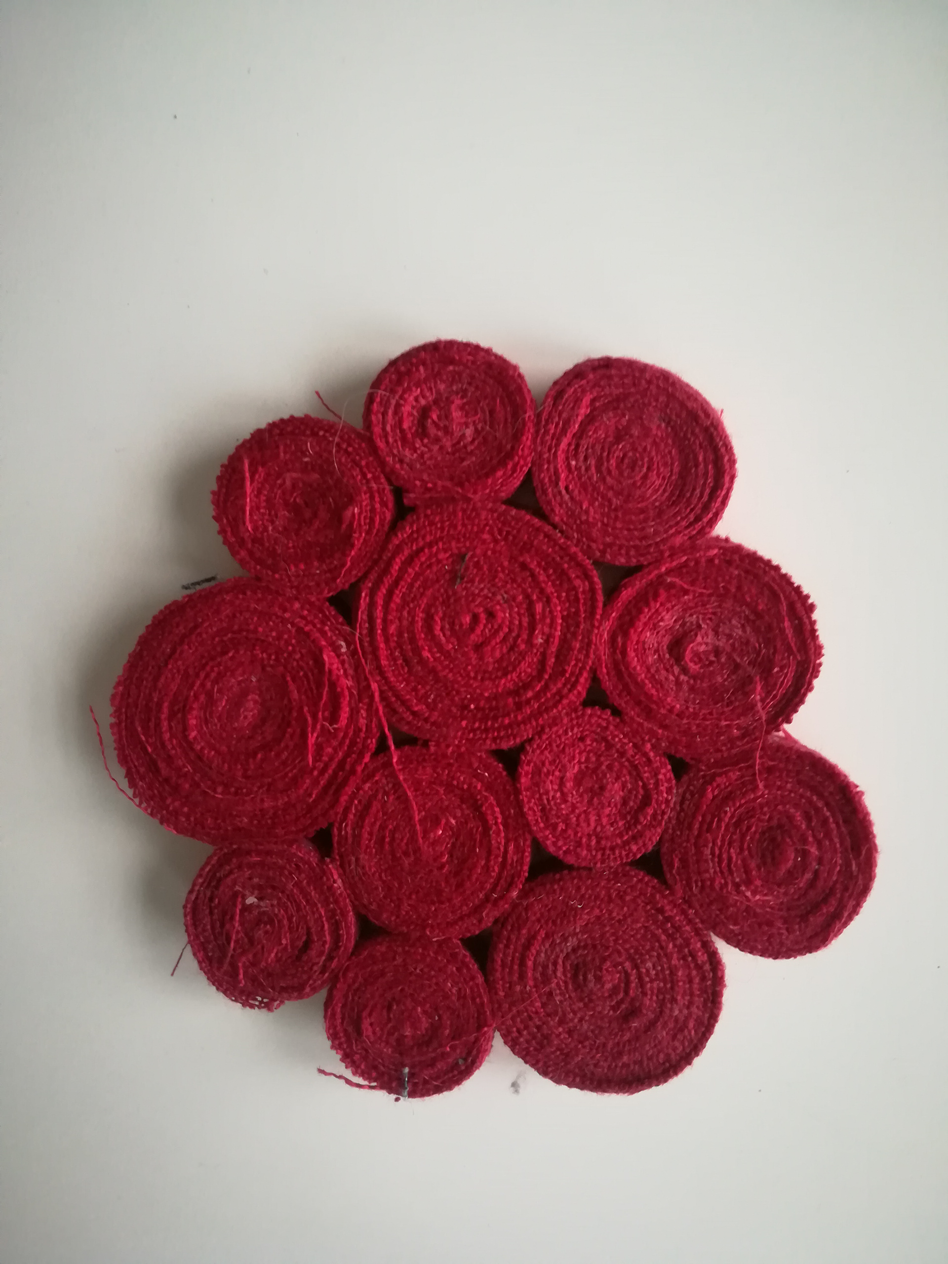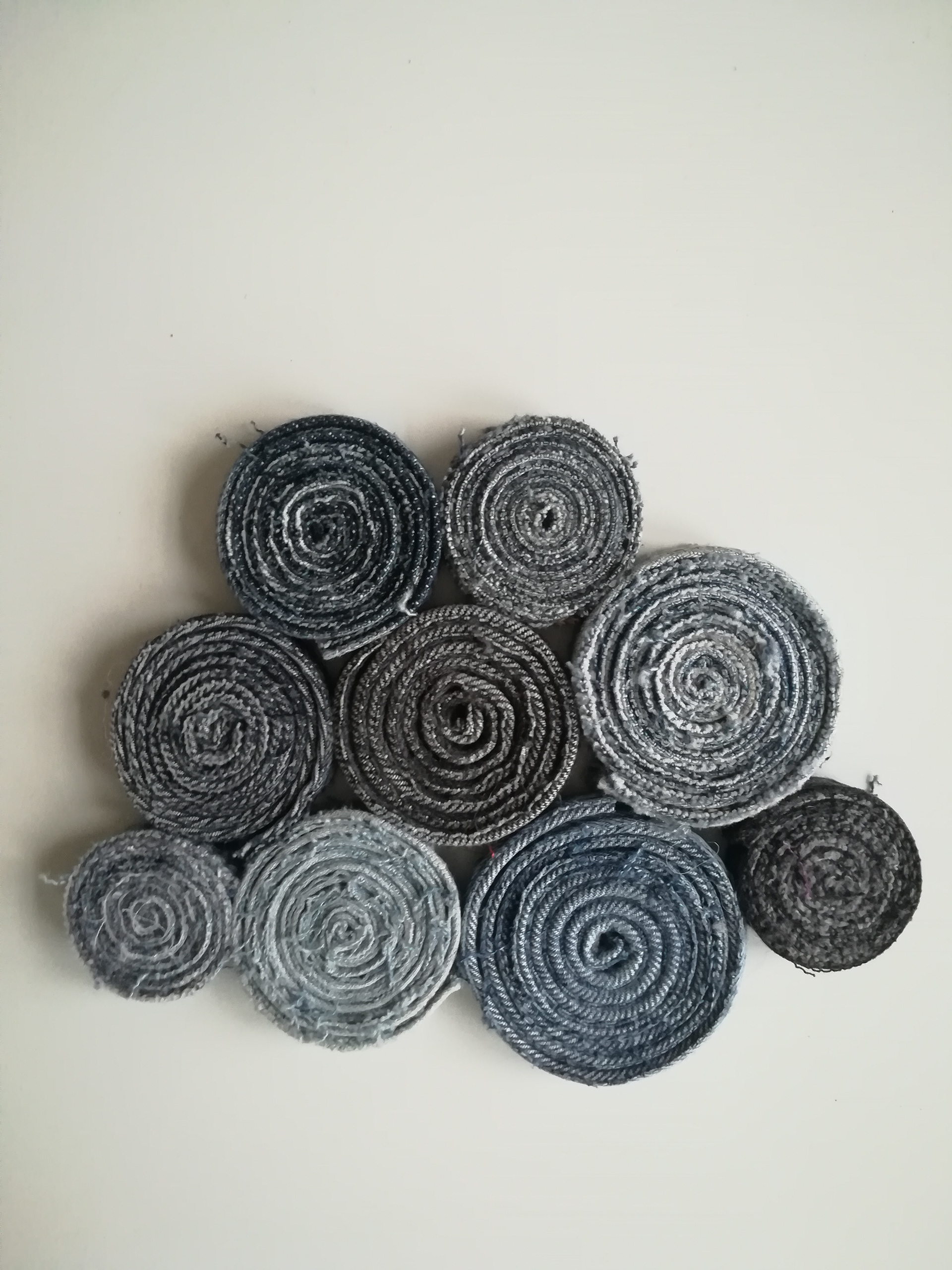 Grytunderlägg av jeans-sömmar som är rullade och ihoplimmade. Se gärna mer under projektet om jeansåtervinning.